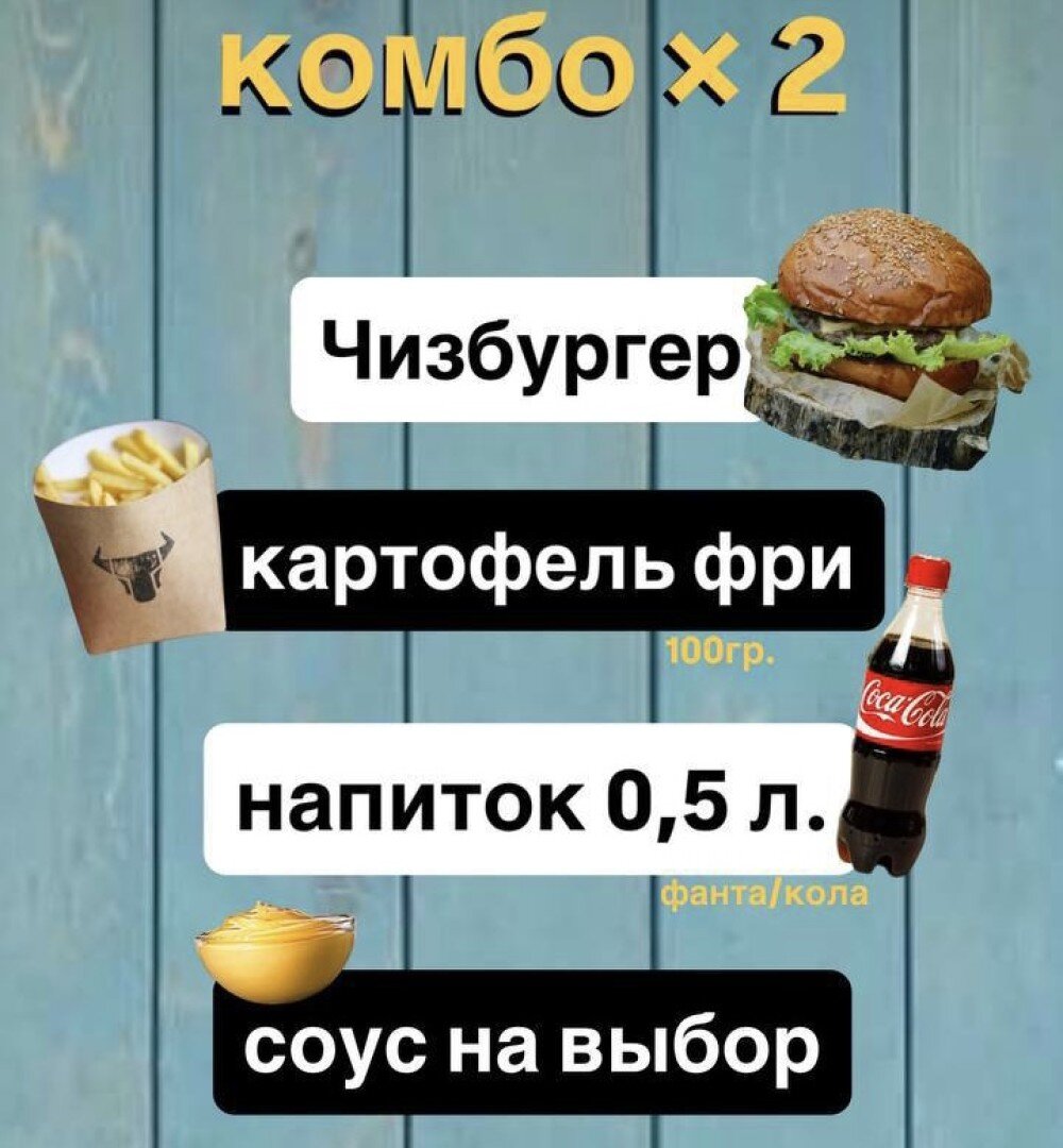Картофель фри (100гр) Х2, напиток 0,5 Х2, соус Х2