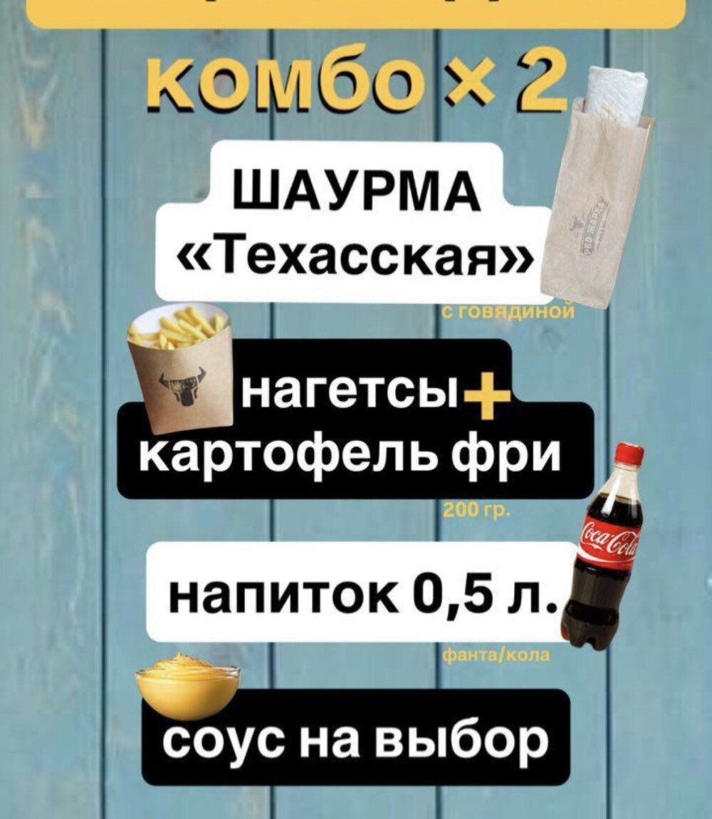 Комбо Х 2 «Техасская» шаурма с говядиной