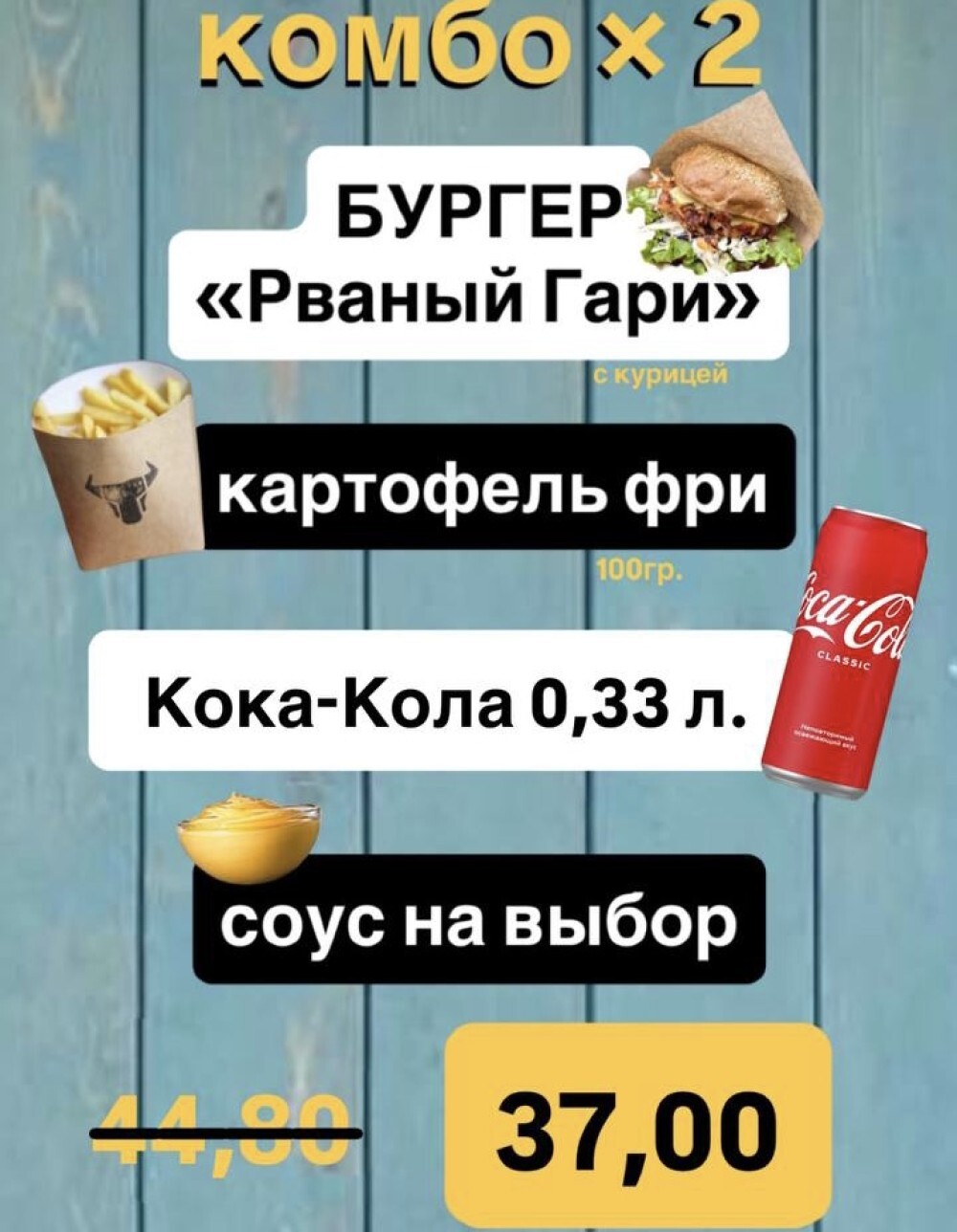 Комбо Х 2 бургер «Рваный Гари» с курицей